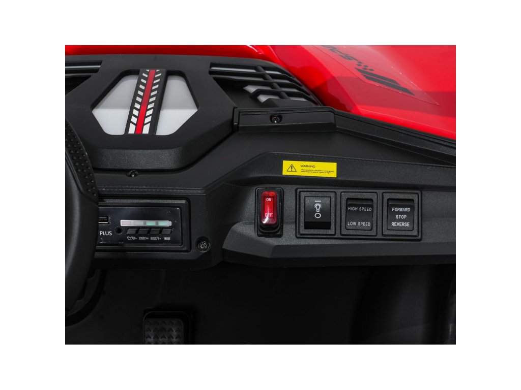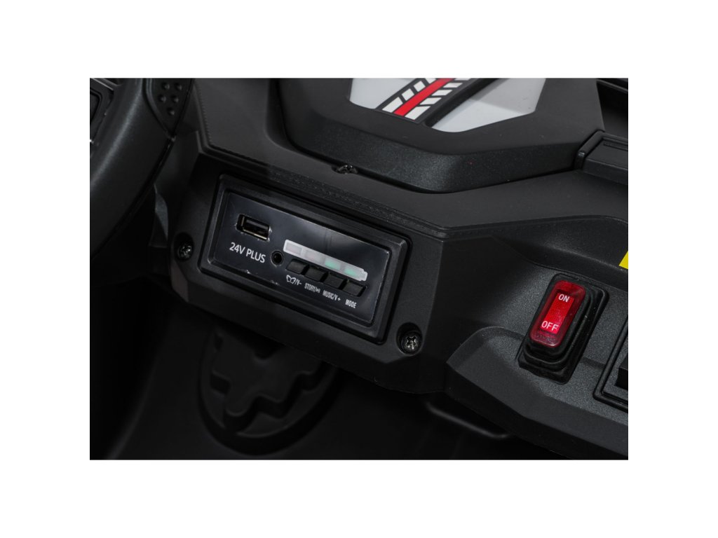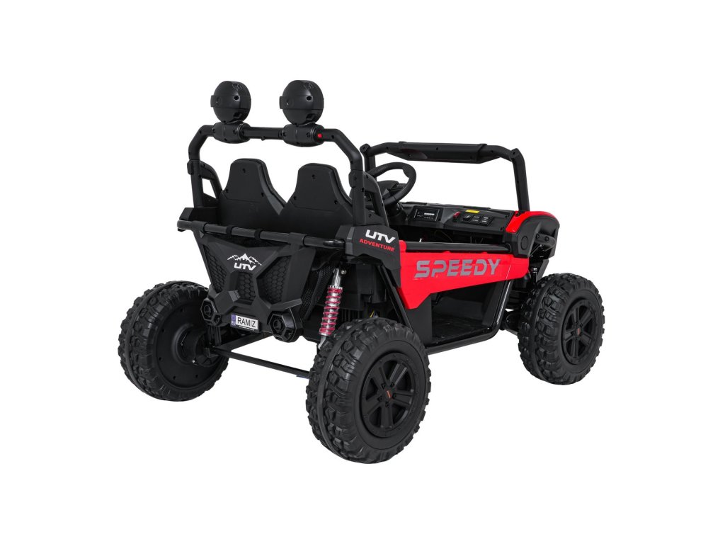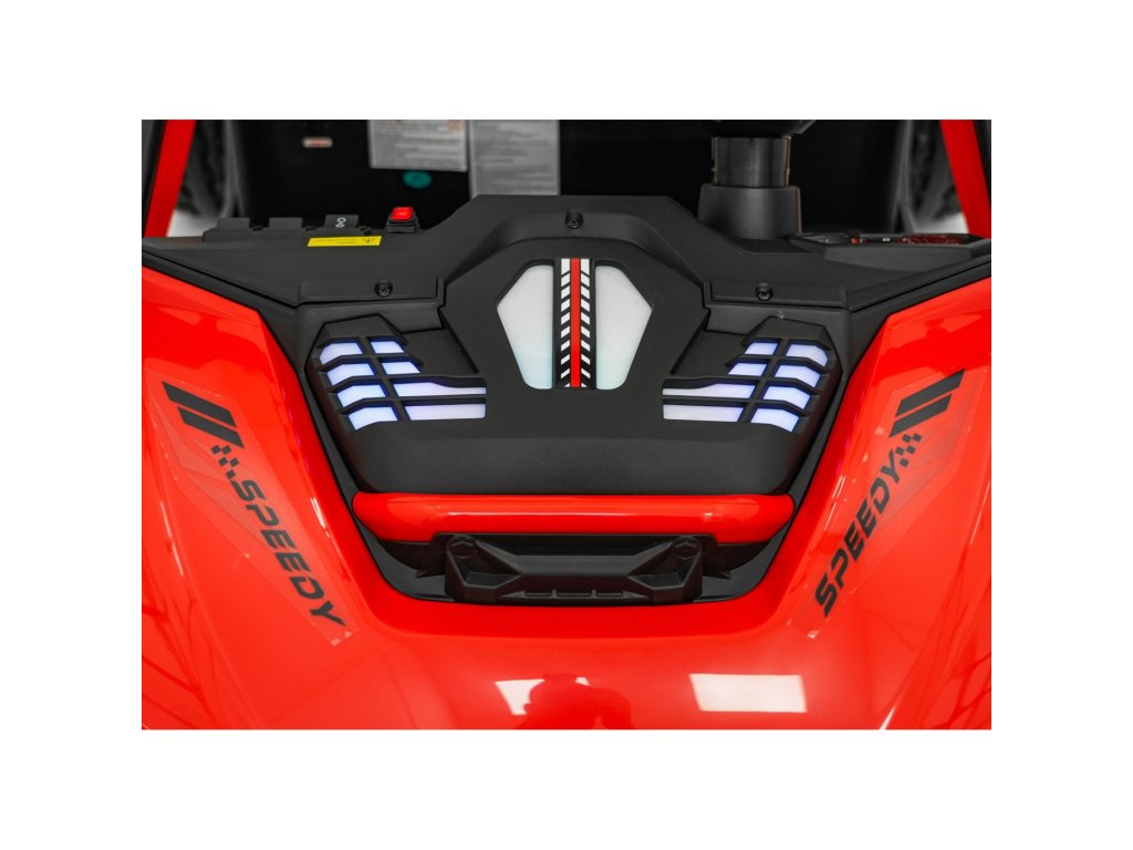 Echipamentul include un panou muzical cu conexiuni MP3, USB, AUX, Bluetooth și melodii preînregistrate. Datorită scaunului spațios din piele ecologică cu două locuri și portbagajului spate, Buggy SPEEDY este un companion excelent pentru fiecare plimbare.