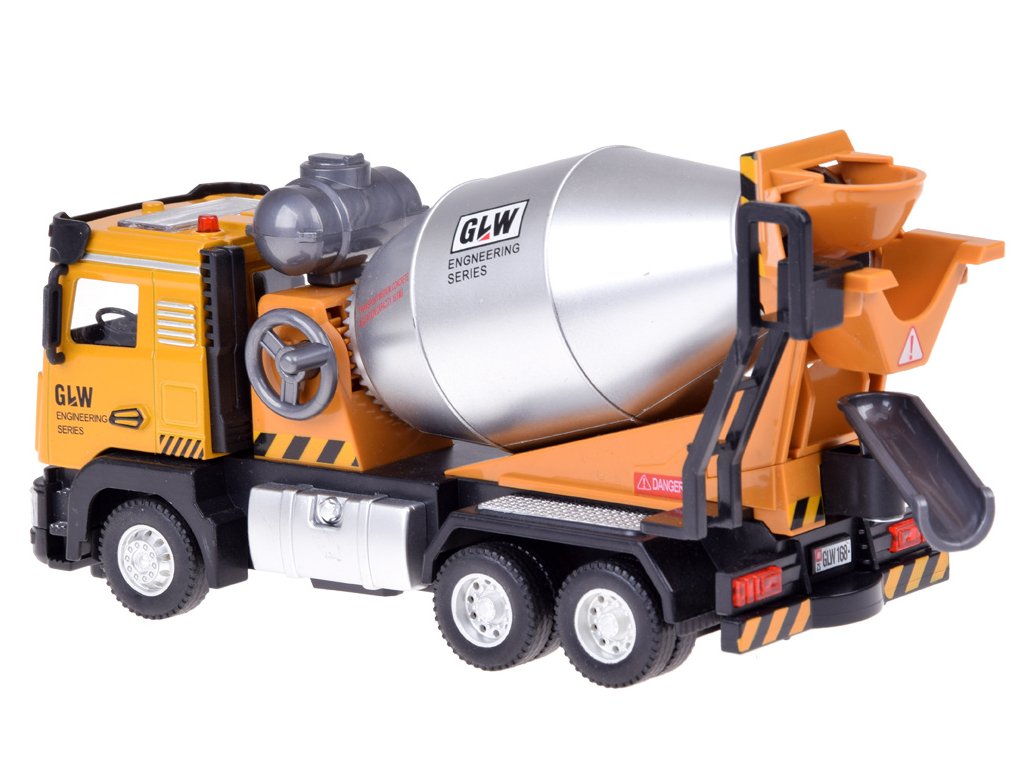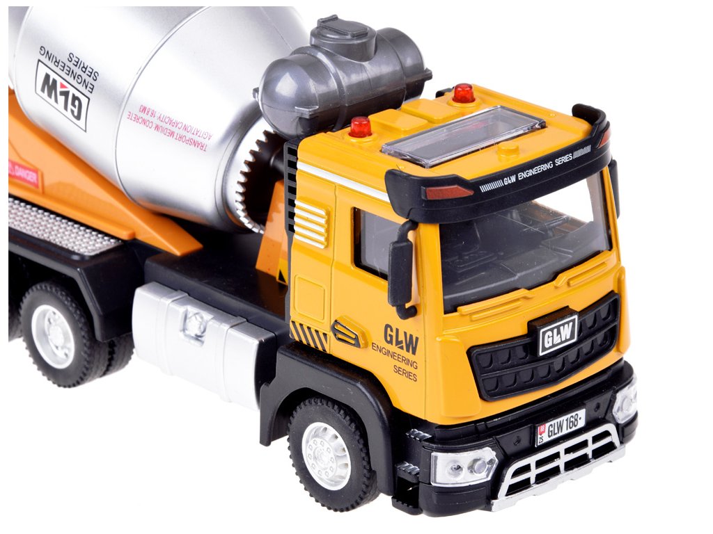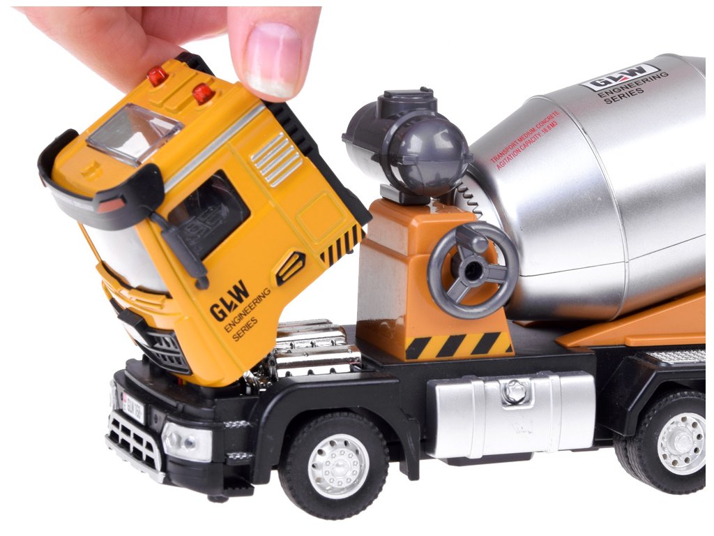 Betoniera cu sunet și lumină - aceasta este o ofertă excelentă pentru fiecare mic constructor. Cu această betoniere, jocul de construcție capătă o dimensiune cu totul nouă! Mașina este realizată foarte realist, cu atenție la cele mai mici detalii. Mașina este echipată cu efecte de sunet și lumină, care adaugă o dimensiune realistă jocului. Vehiculul are un rezervor mobil care poate fi rotit cu o manivelă și o cabină care se deschide unde puteți privi în interiorul motorului.