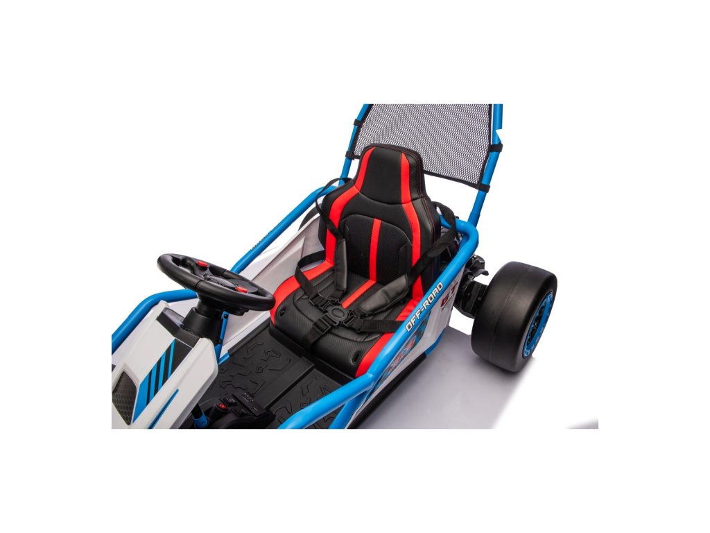 Motocicleta este echipată cu roți frontale EVA pentru o călătorie lină, în timp ce roțile din plastic din spate permit driftarea ușoară. Desigur, sunt incluse amortizoare spate reglabile, pornire lină și centuri de siguranță pentru o mai mare siguranță în timpul conducerii. Totul este completat de un panou audio modern cu Bluetooth și player MP3.