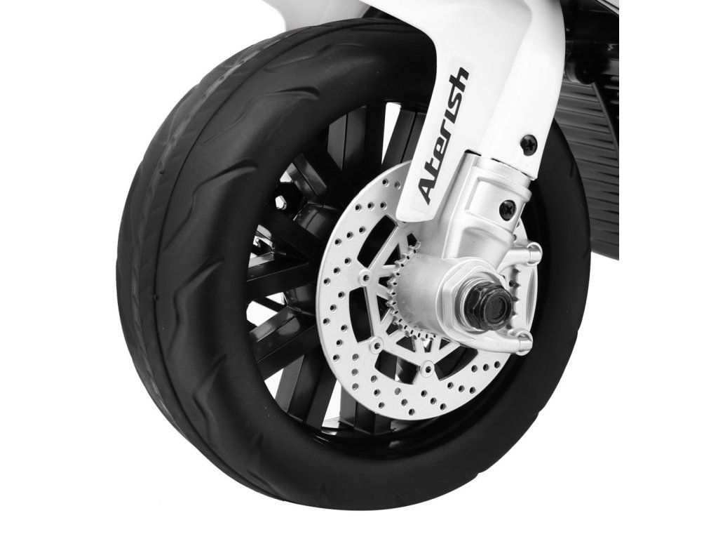Motocicleta electrică pentru copii cu licență BMW este un accesoriu excelent pentru familiile cu copii la plimbare sau pentru a sta în grădină. Datorită mersului pe motocicleta pentru copii, copilul își dezvoltă abilitățile de conducere și, de asemenea, echilibrul. Motocicleta merge doar înainte și este echipată cu un scaun ergonomic care are grijă de confortul copilului. Motocicleta pentru copii are, de asemenea, efecte de lumină încorporate și, datorită designului elegant, copilul nu va fi trecut cu vederea de nimeni. Nu trebuie să vă faceți griji că copilul dumneavoastră se va pierde din vedere. Motocicleta rulează cu o viteză maximă de 3 km/h. Motocicleta este potrivită pentru copiii de la 18 luni și este certificată cu marcajul european de siguranță CE.