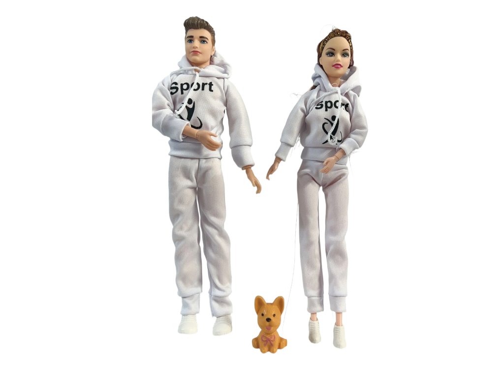 Păpuși Fashion Cuplu cu cățeluș, cuplu sportiv alb MT1192