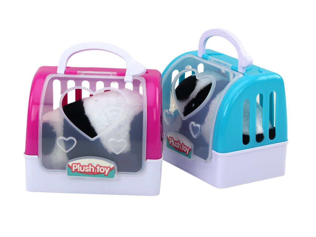 Dar asta nu este tot! Panda interactivă este găzduită într-o ladă drăguță, ale cărei culori pastelate sunt roz și albastru. Datorită transportatorului, ne putem duce panda oriunde.