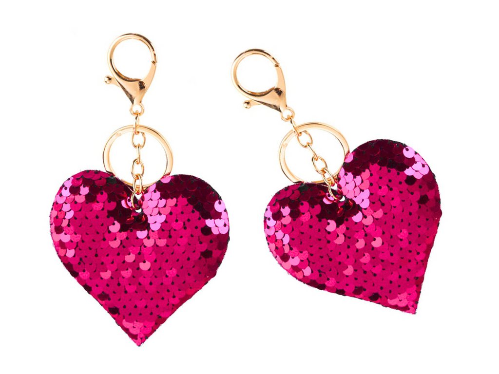 Pandantivul in forma de inima cu paiete in doua nuante este un accesoriu elegant si stilat. Confectionat in forma de inima, pandantivul este impodobit cu paiete roz inchis care ii confera un aspect elegant si stralucitor.