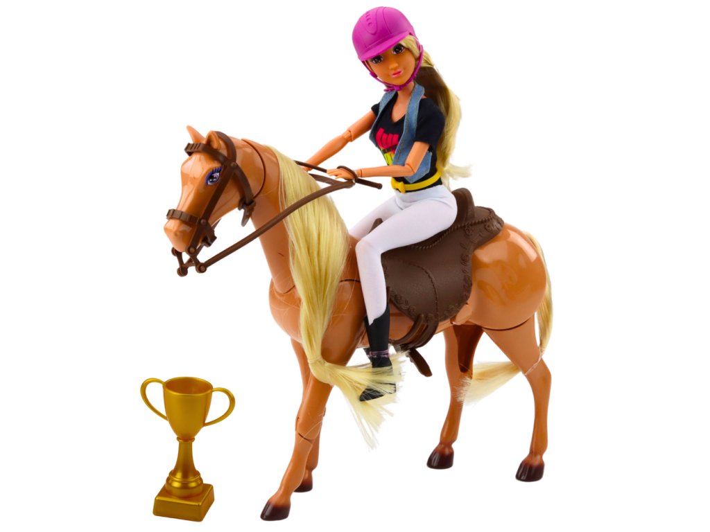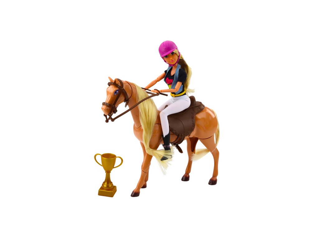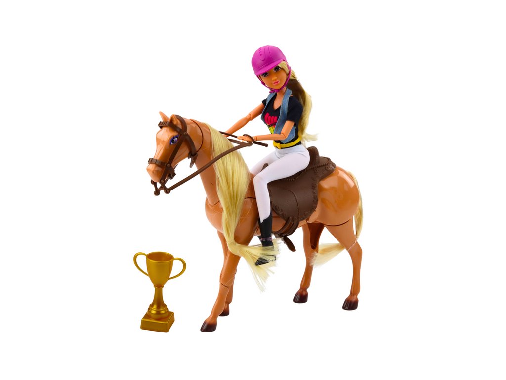 Membrele mobile ale păpușii îi permit să fie plasată în diferite ipostaze - poate sta jos, în picioare, poate ține frâiele sau se poate pregăti pentru o competiție. Toate acestea îi oferă copilului control deplin asupra jocului și îi permit imaginației să se dezvolte în mai multe direcții. Jucăria este fabricată din materiale durabile și sigure.