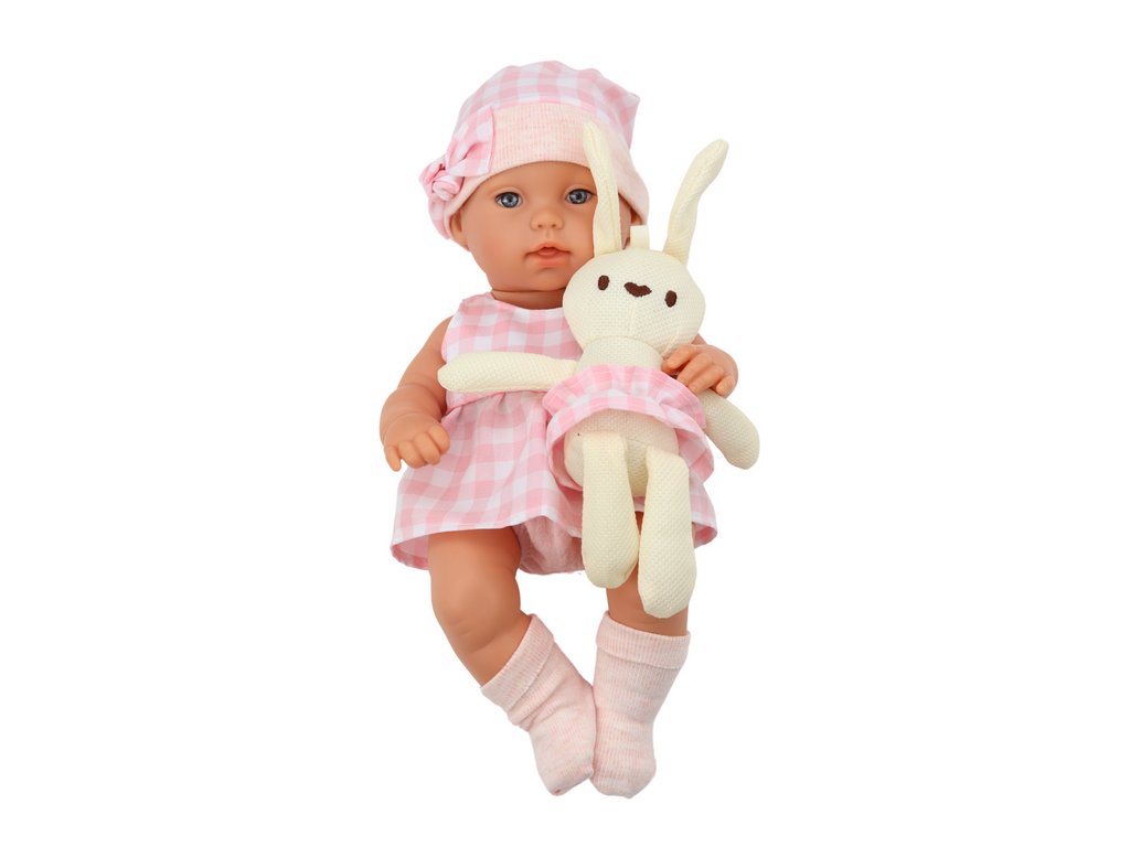 Păpușă Bebeluş în marsupiu Haine în carouri iepure roz