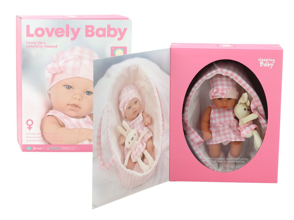 Păpușa în marsupiu este o jucărie excepțională care transportă copiii în lumea îngrijirii și îngrijirii unui prieten mic. Îmbrăcată într-o rochie drăguță în carouri roz și alb, pălărie cu fundă și șosete, alături de un iepuraș de pluș drăgălaș, păpușa arată extrem de drăguță și atrăgătoare.