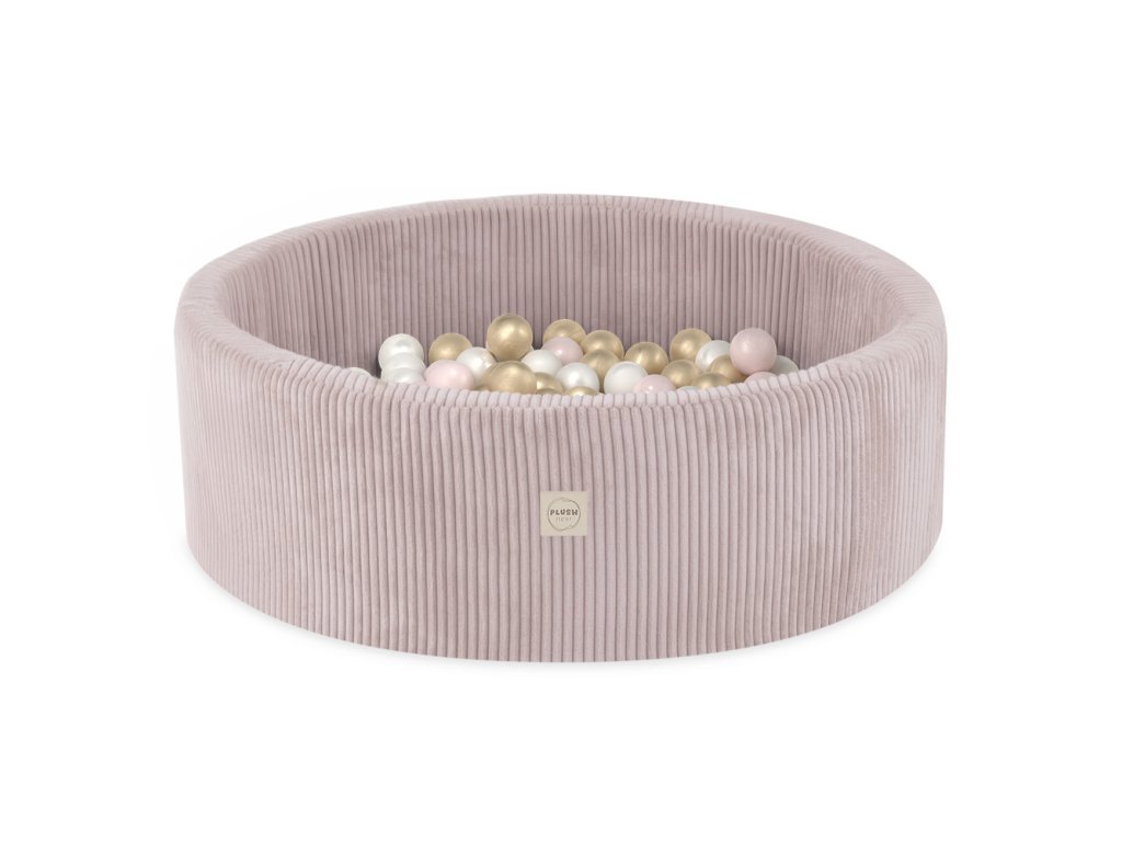 Piscina uscată rotundă Cord Catifea roz deschis Ø 90 × 30 cm cu 200 de bile