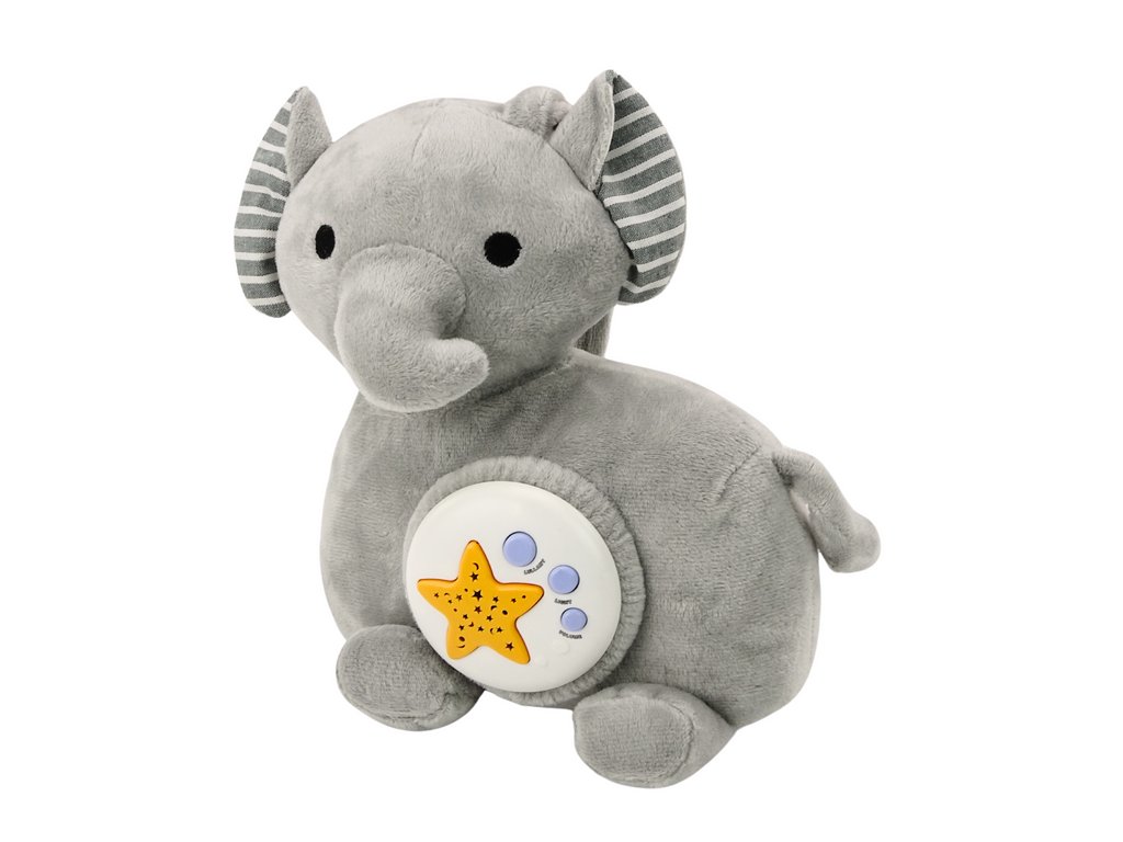 Proiector de somn pentru elefant de pluș gri - un elefant drăgălaș cu stele și melodii
