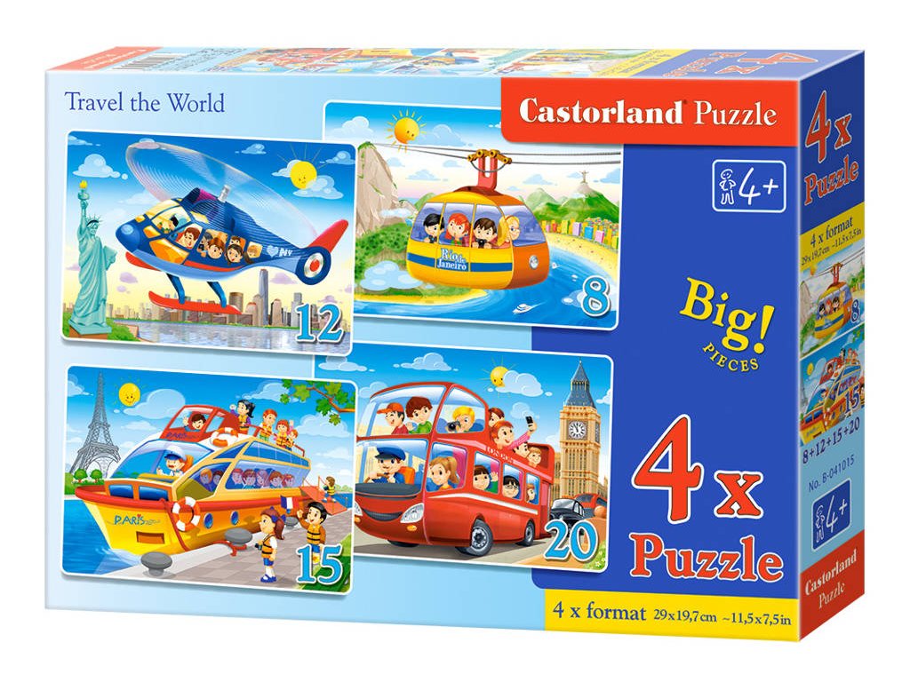 Puzzle 4 în 1 cu 8, 12, 15, 20 de piese Călătorind prin lume