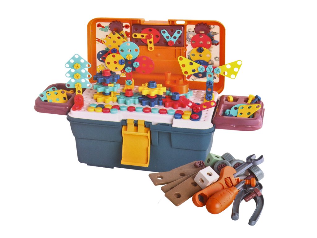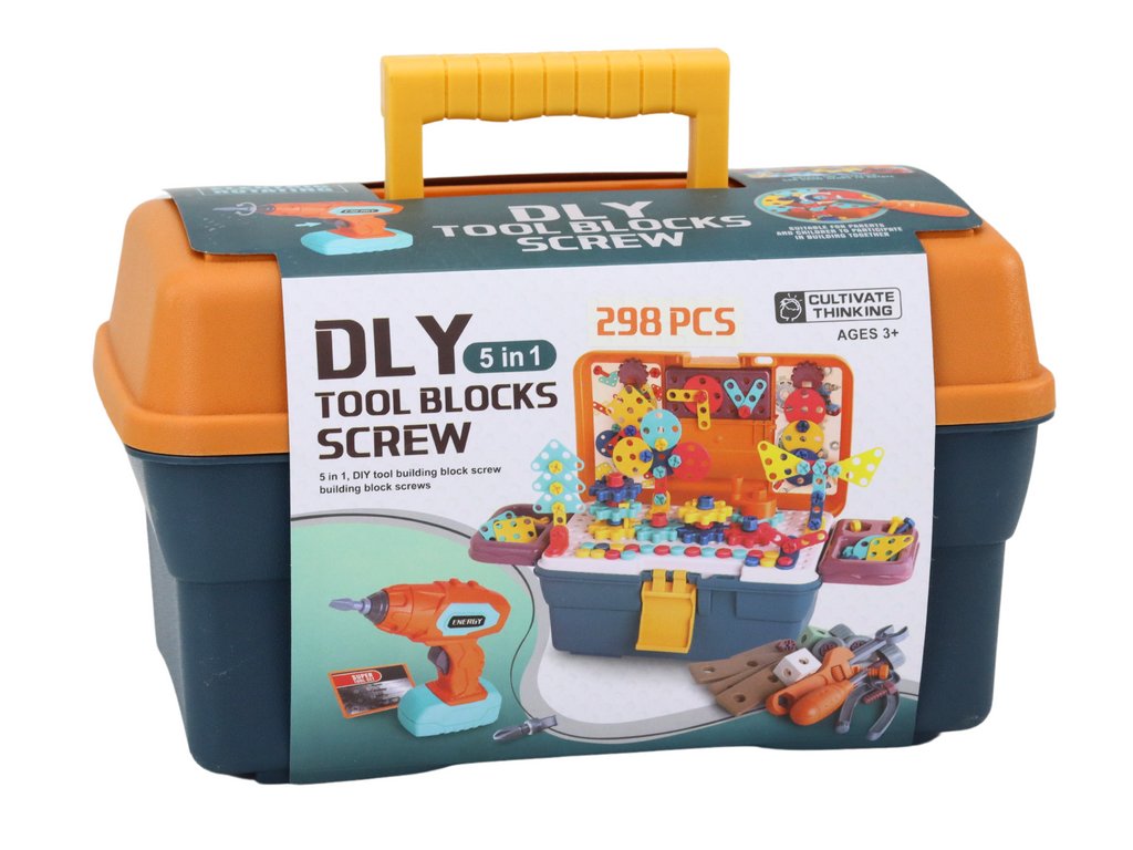 Setul include un burghiu cu mânere ergonomice, potrivite în mod ideal pentru mâinile mici, și diverse tipuri de șuruburi și unelte care facilitează asamblarea. Datorită lor, copilul se poate simți ca un adevărat constructor, construindu-și propriile construcții.
