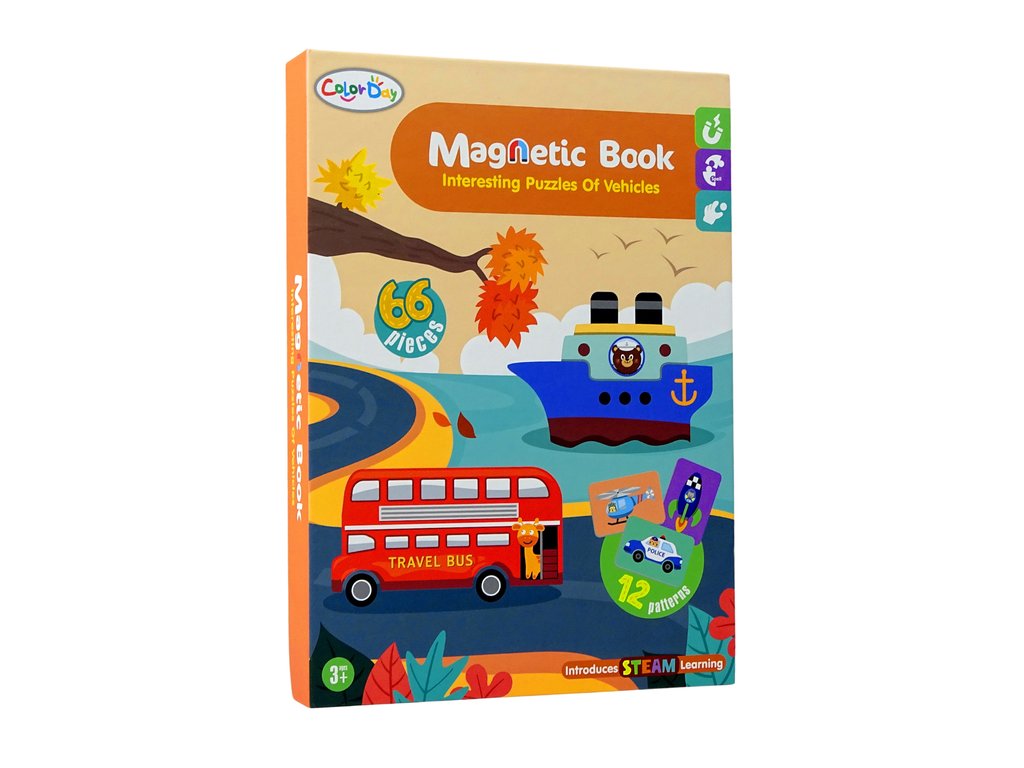 Puzzle magnetic educațional din cartea Mijloace de transport