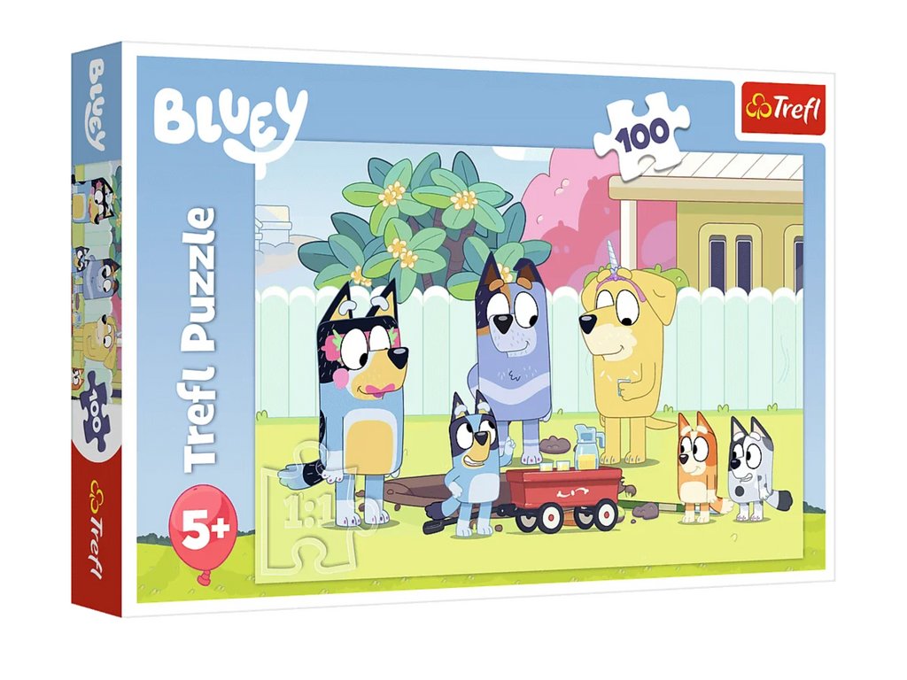 Puzzle-ul „Merry World Bluey” de la marca Trefl contine 100 de piese si este destinat fanilor popularului basm Bluey. Fabricat din materiale de calitate și hârtie specială care reflectă lumina pentru o pliere mai ușoară.