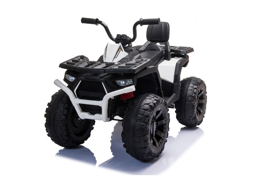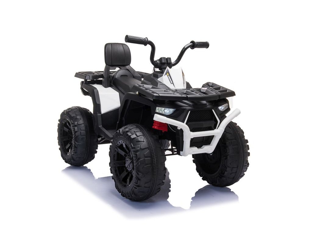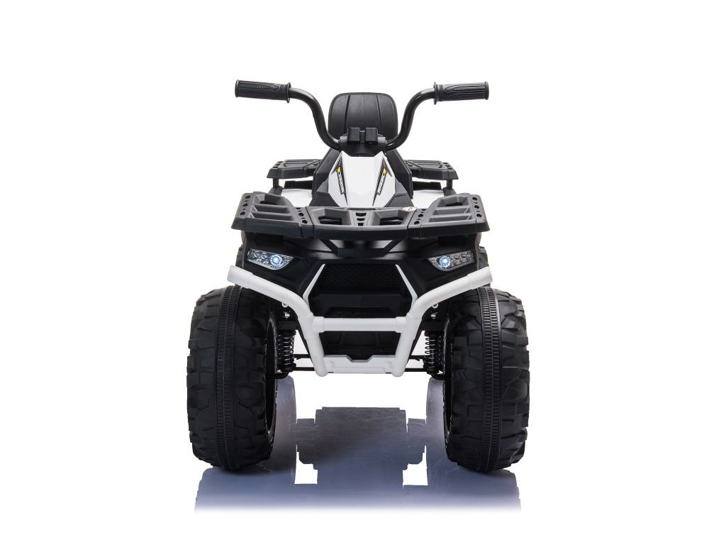 Vehiculul cu patru roți are un scaun din piele ecologică și roți din spumă EVA , ceea ce va face călătoria mai plăcută pentru copil. Marele avantaj al quad-bike-ului este farurile din față și din spate. Siguranța este asigurată de frâna automată, care se activează atunci când pedala de accelerație este eliberată.