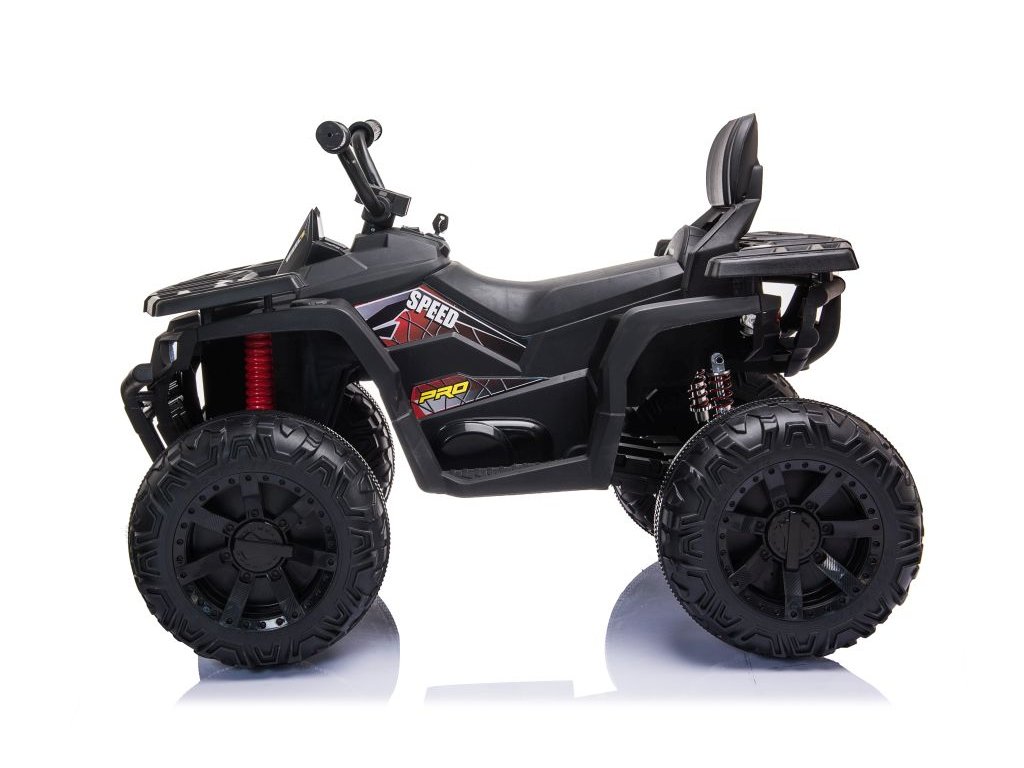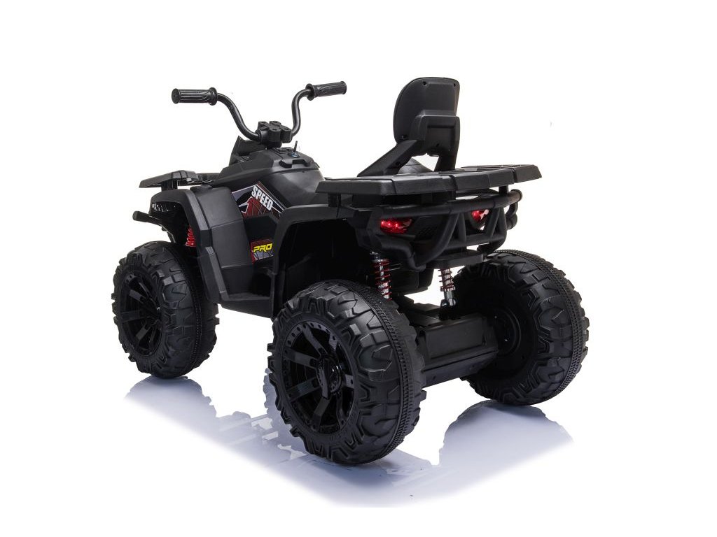 Quad-bicicleta electrica pentru copii SpeedPro este echipata cu doua motoare de 200W si doua baterii de 12V 4.5Ah . Vehiculul cu patru roți are o transmisie automată și un buton care vă permite să comutați viteza vehiculului cu patru roți - viteză mai mare și mai mică. Viteza quad-ului este în intervalul 3-8 km/h.