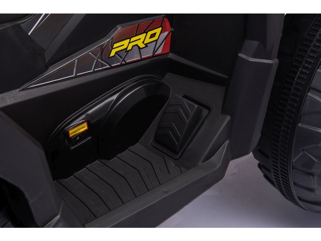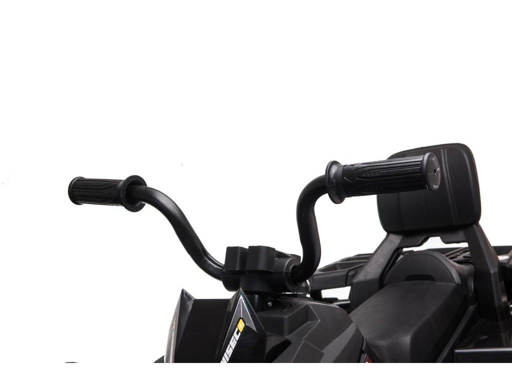 Vehiculul cu patru roți are un scaun din piele ecologică și roți din spumă EVA , ceea ce va face călătoria mai plăcută pentru copil. Marele avantaj al quad-bike-ului este farurile din față și din spate. Siguranța este asigurată de frâna automată, care se activează atunci când pedala de accelerație este eliberată.