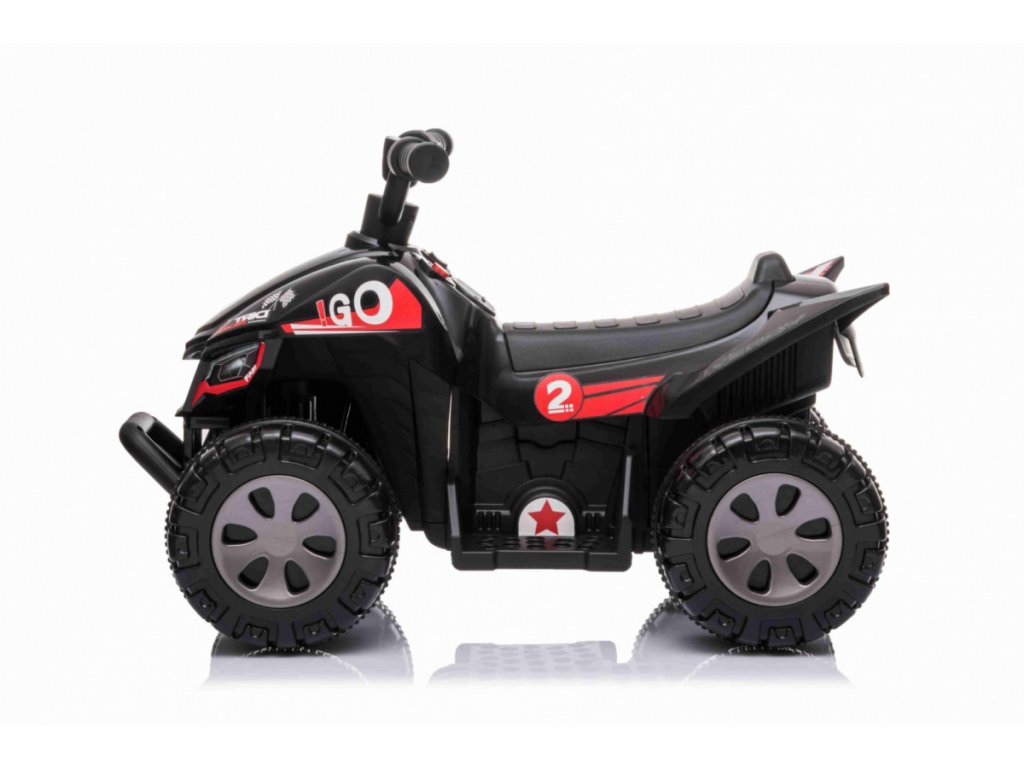 Vehiculul electric cu patru roți pentru copii pentru șoferi nepretențioși este destinat copiilor cu o capacitate de încărcare de până la 30 kg . Este controlat de un buton de pe mâner.