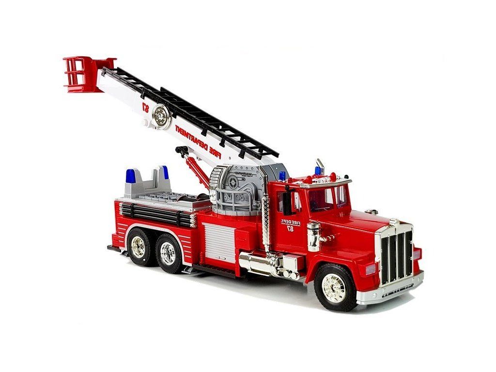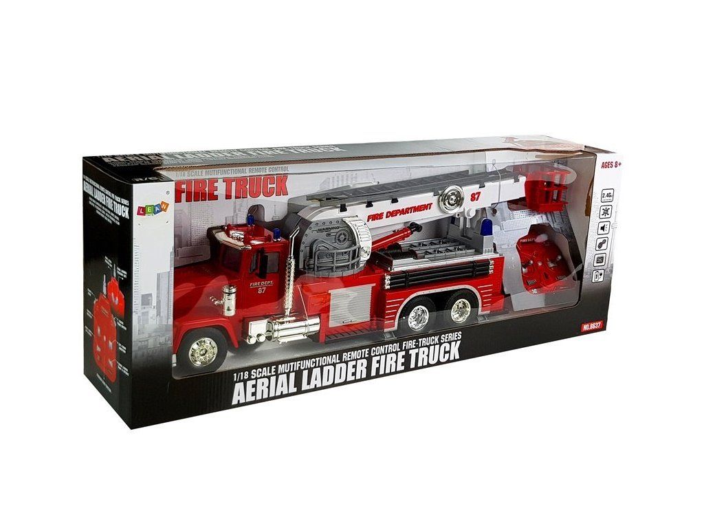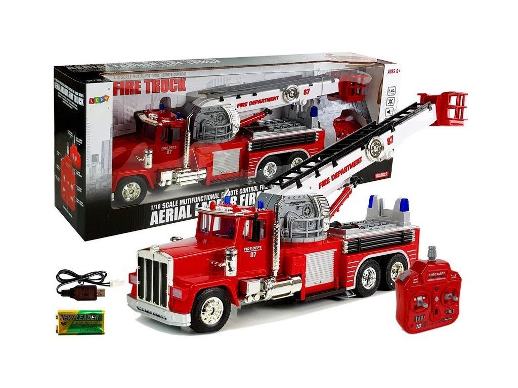 Mașina de pompieri cu telecomandă are sirene LED intermitente. Telecomanda permite mișcarea în toate direcțiile, care este însoțită de semnale sonore și elemente luminoase.