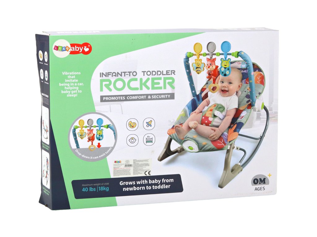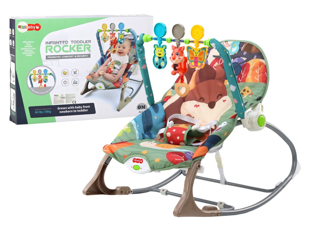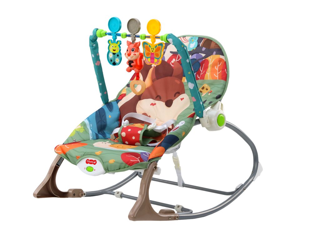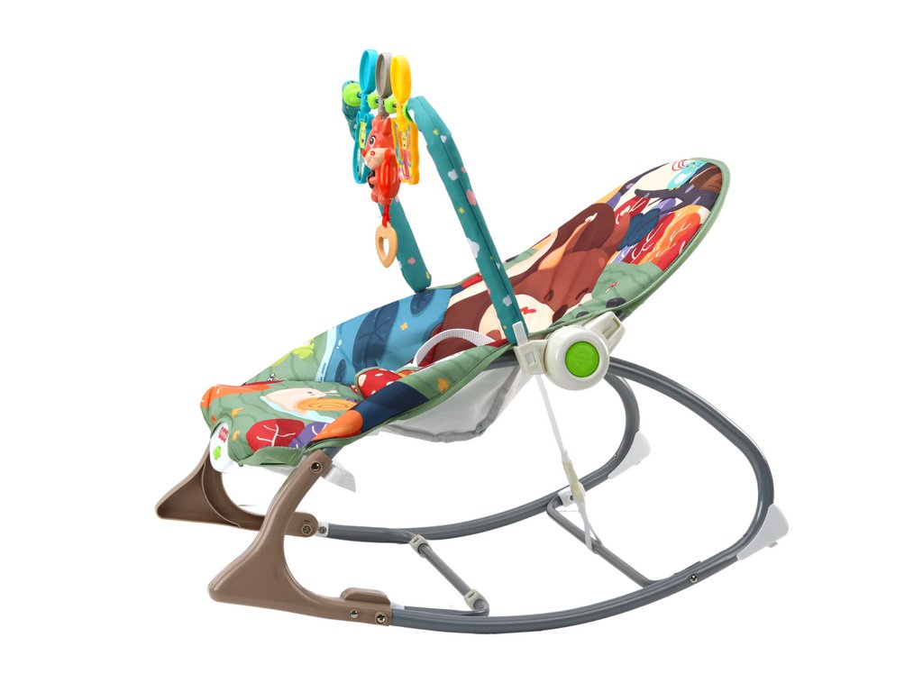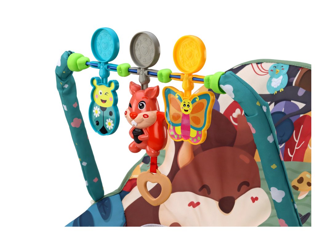 balansoar pentru copii cu un motiv simpatic de animale din padure. Scaunul nostru balansoar nu este doar un loc confortabil de odihnă pentru copilul dumneavoastră, ci și o zonă de joacă interactivă care îi stimulează dezvoltarea.