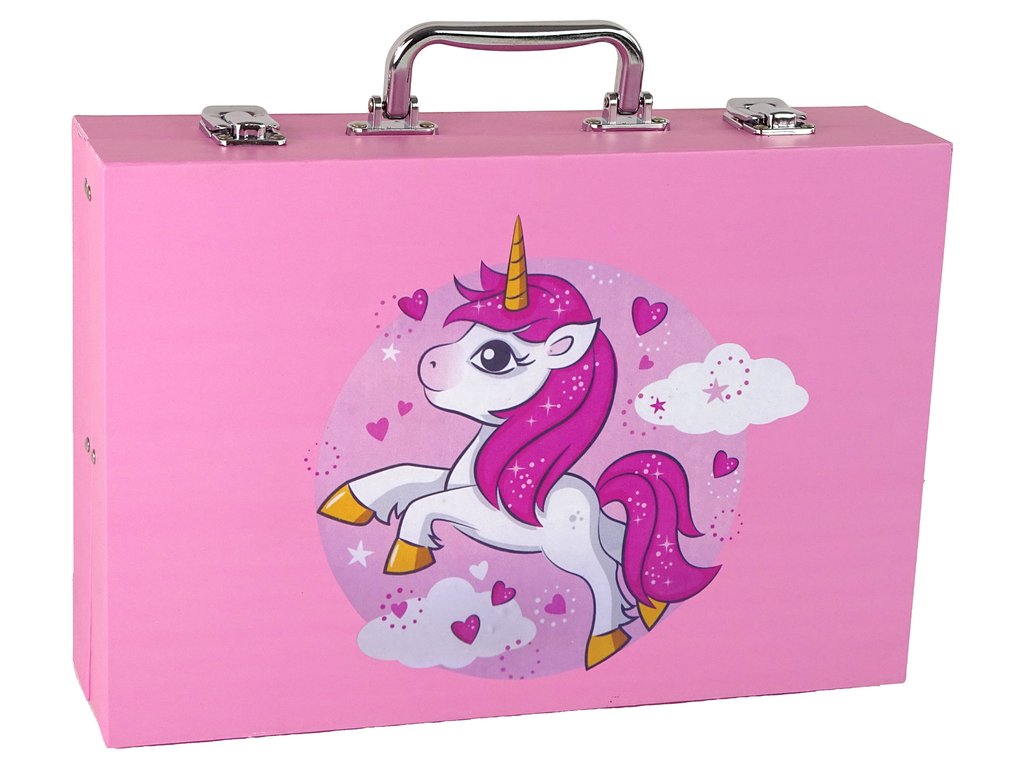 Set de artă mare într-o valiză 145 de elemente unicorn roz