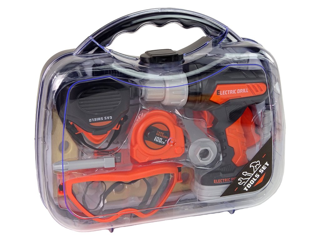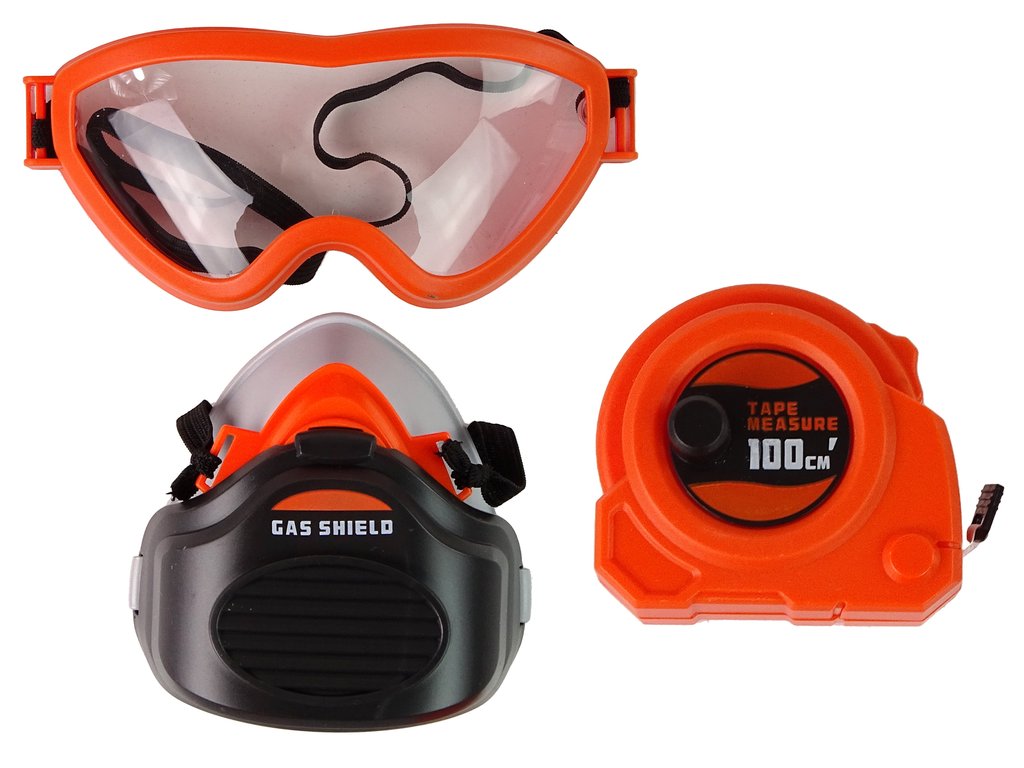 Întregul set este inclus într-o cutie practică. În interior există unelte din plastic. Șurubelnița funcționează cu baterie; după introducerea bateriilor și apăsarea butonului, burghiul se rotește și scoate, de asemenea, un sunet realist. El poate purta ochelari de protecție și mască în timpul lucrului. O bandă mică de centimetri și un ferăstrău pentru sculptură vor fi utile pentru lucrul precis. Toate elementele facilitează munca și învață operatorul.