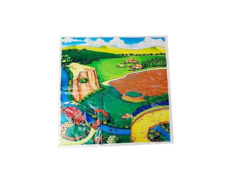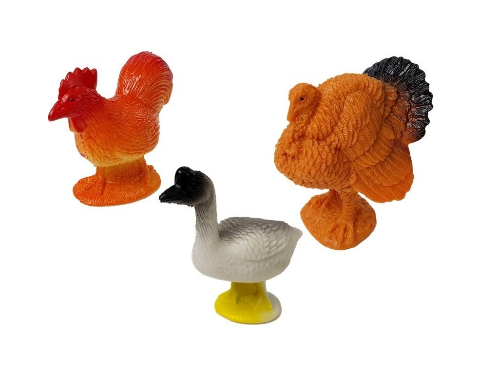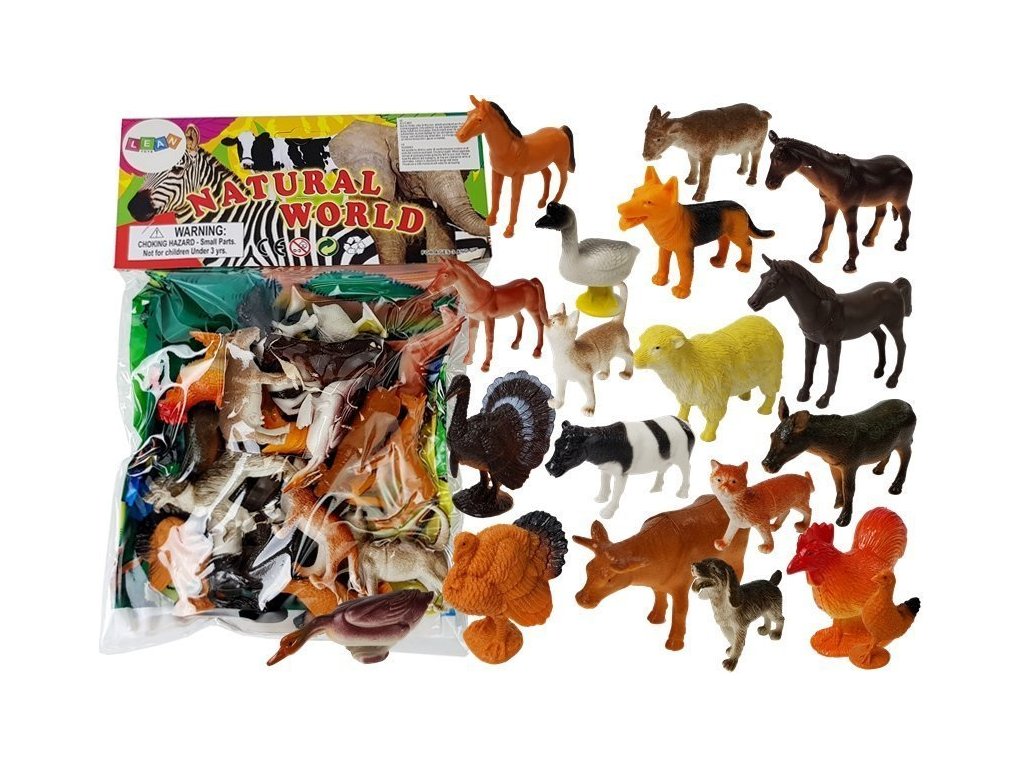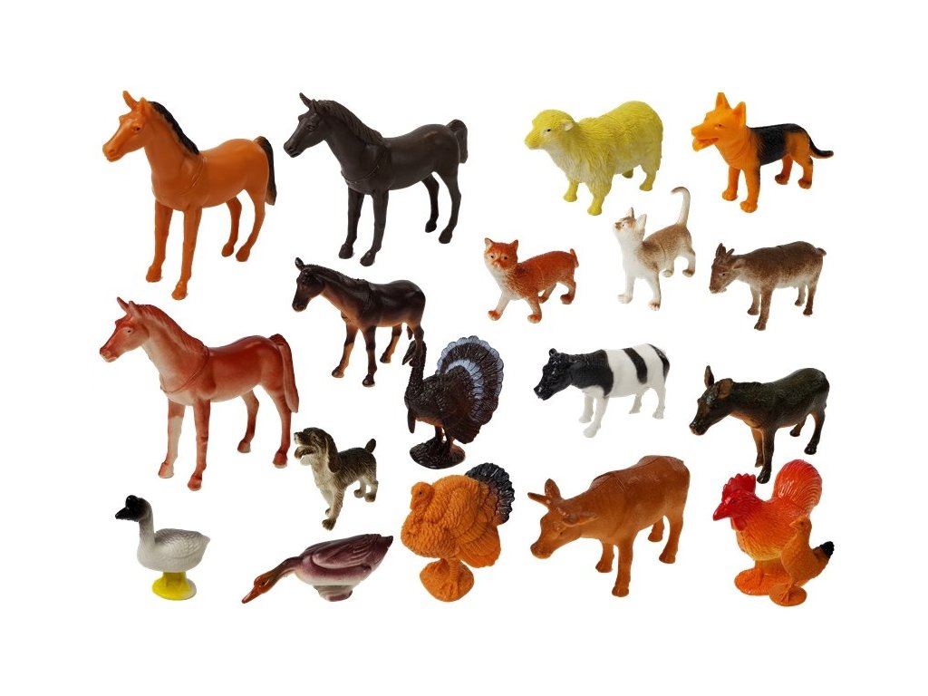 Aspectul și culoarea corespund modelelor realiste. Întregul set conține aproximativ 20 de figurine și un covoraș cu un peisaj al unei frumoase ferme mari. Iubitorii de natură vor fi cu siguranță mulțumiți. Covorașul arată o casă frumoasă de sat și câmpuri mari pentru animale. Setul include min. vaci, cai, oi, curcani, caine, pisica, cocos, curcan, gasca.