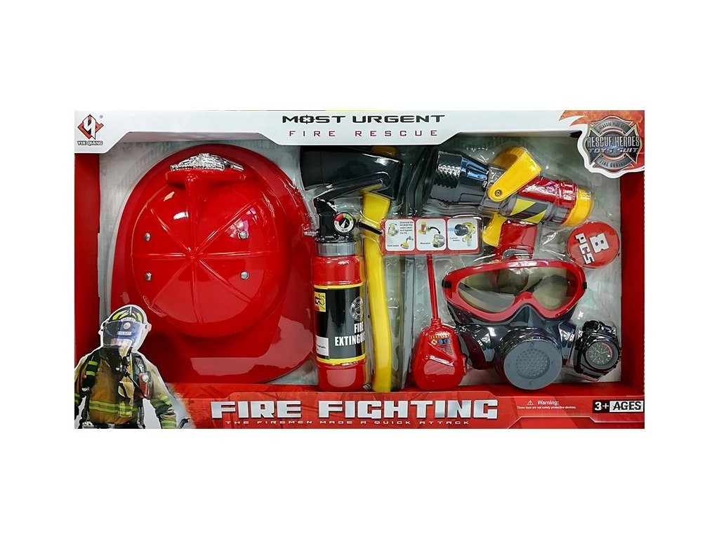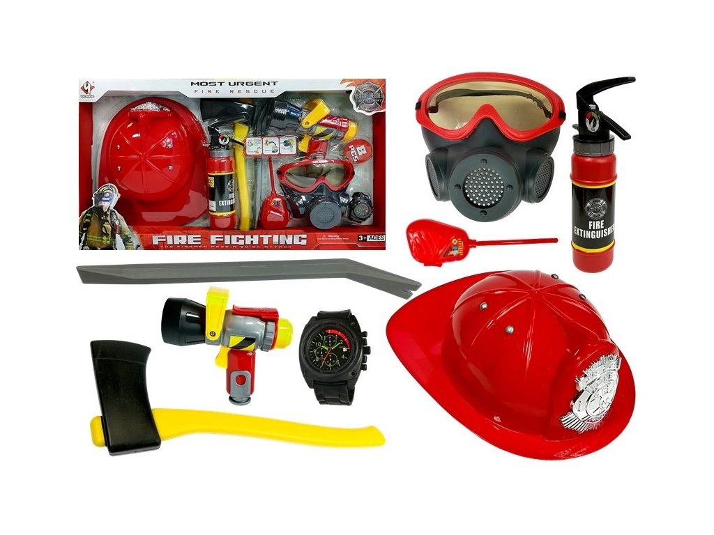 Set pompieri pompieri apa extinctor masca casca rosie