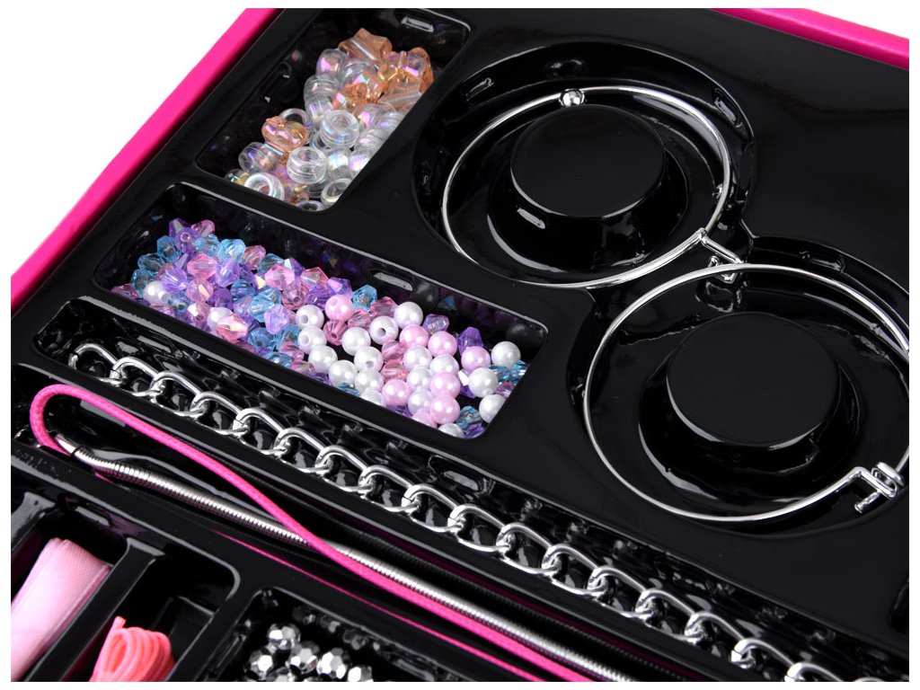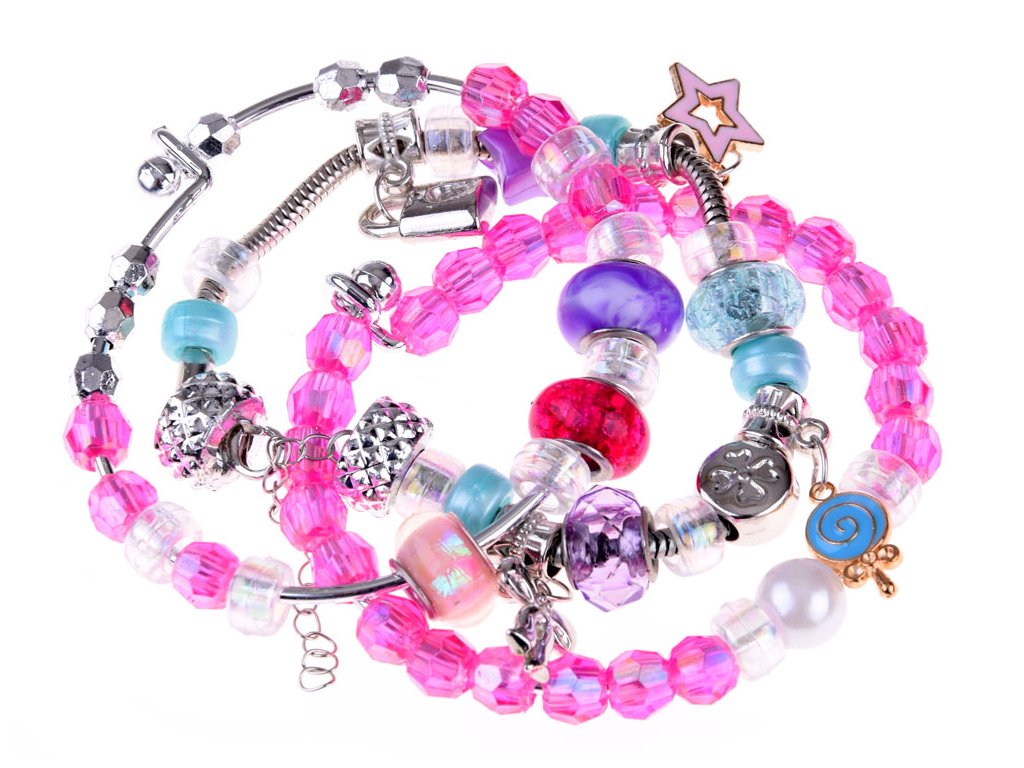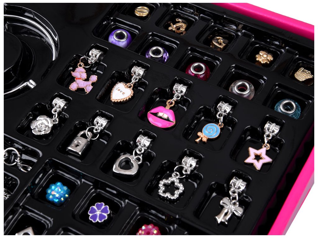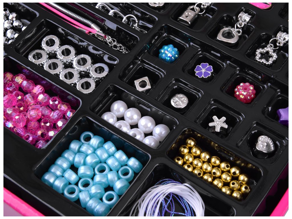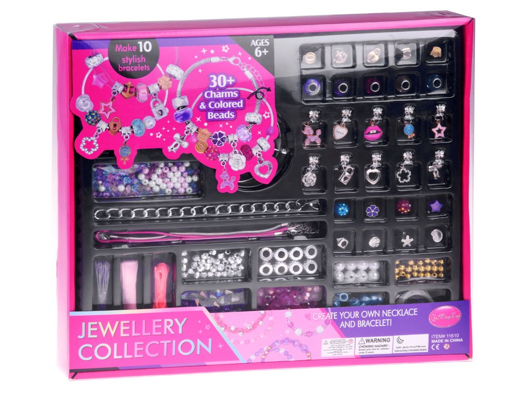 Un set de margele de argint și aur pentru a vă crea propria brățară sau colier unic va oferi fiecărei fete multă distracție pozitivă. Fetele cărora le place să lucreze manual vor găsi multă inspirație în acest set pentru a-și crea propriile bijuterii. Și după cum se știe, fiecare bijuterie realizată separat va fi unică. Setul este realizat din plastic de culoare argintiu si auriu cu cristale colorate si margele imitand perle.
