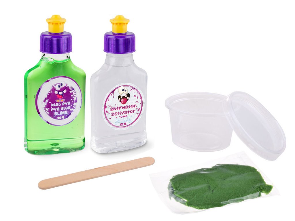 Set tuban verde de jucărie creativă cu slime și nisip cinetic