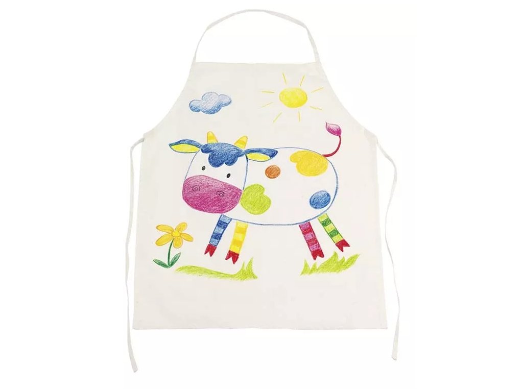 Șorț de bumbac pentru copii, în nuanțe naturale, potrivit pentru decorarea cu creioane de ceară pentru textile. O piesă practică pentru activități creative și protejarea hainelor în timpul picturii.