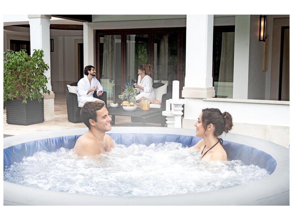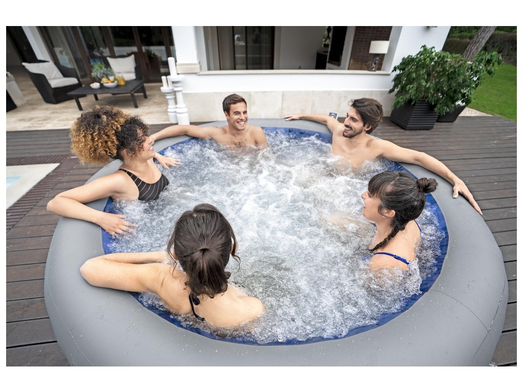 Acest Jacuzzi SPA este o relaxare minunată pentru tine și cei dragi. Spa-ul este echipat cu pereți gonflabili rezistenți, care vor fi ideali ca spătar atunci când folosești spa-ul. Rezervorul poate găzdui până la 7 adulți. Nu va trebui să-ți faci griji cu privire la puritatea apei, deoarece va asigura pompă de filtrare , care este inclusă în set. Husa inclusă asigură, de asemenea, curățenia în cada gonflabilă și protecție împotriva insectelor nedorite care cad în apă. Podeaua moale, izolată, oferă confort și protejează apa de răcirea de la sol. Pernele incluse oferă, de asemenea, un confort suplimentar.