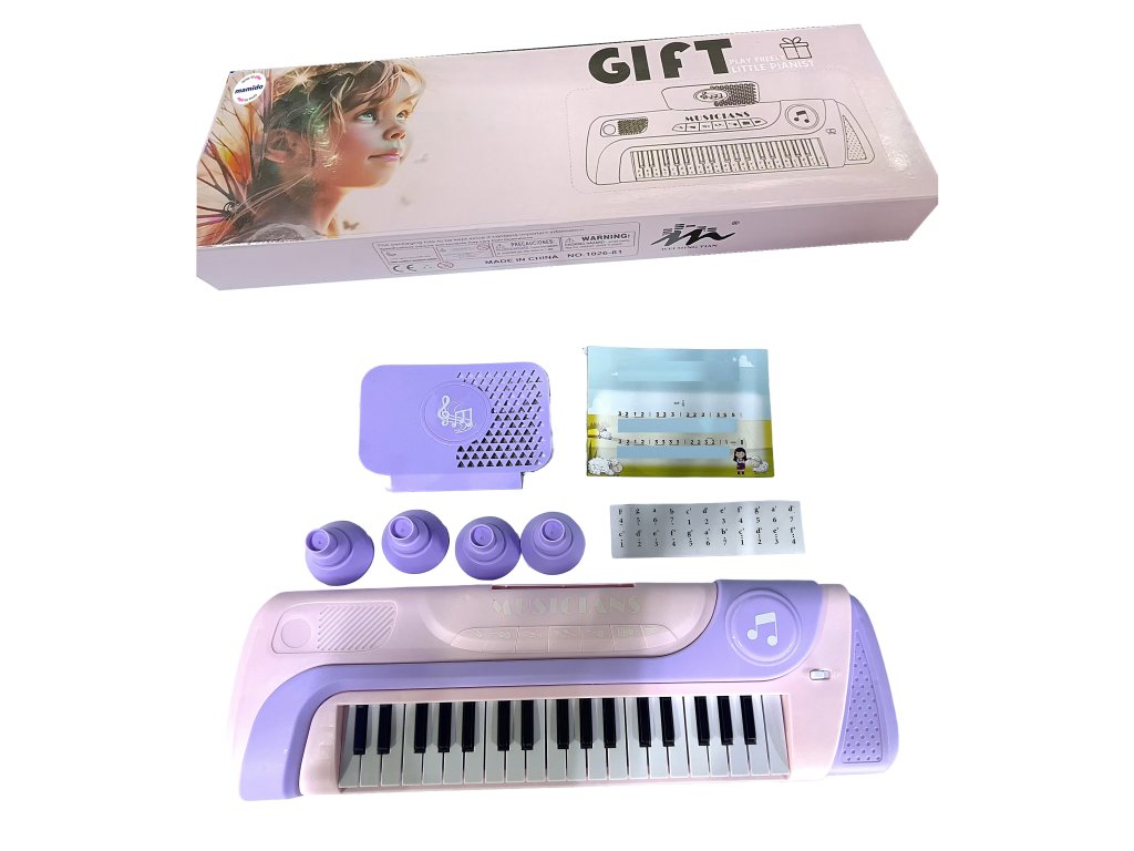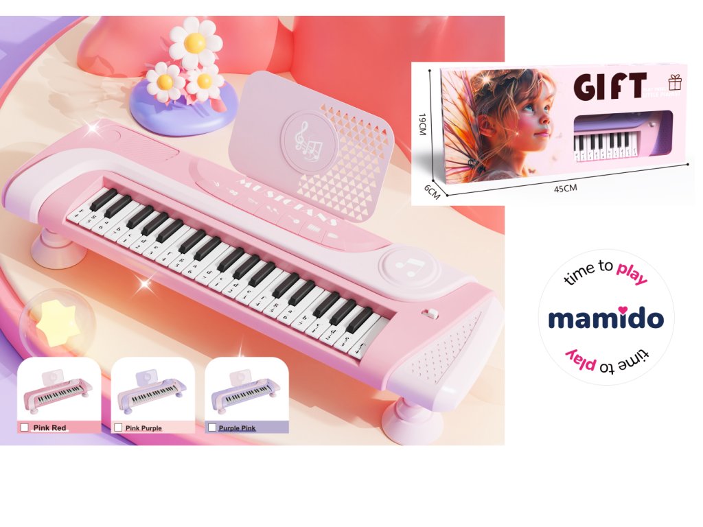 Descoperă lumea muzicii cu acest pian electronic pentru copii cu 37 de clape, conceput special pentru micii muzicieni. Pianul, într-un design atractiv roz-violet, oferă diverse moduri muzicale, melodii demo și posibilitatea de a reda propriile note. Pachetul include, de asemenea, un scaun și un suport pentru note, permițând copiilor să se simtă ca niște adevărați pianiști. Acest claviatură susține creativitatea muzicală, dezvoltă ritmul și oferă ore întregi de distracție.