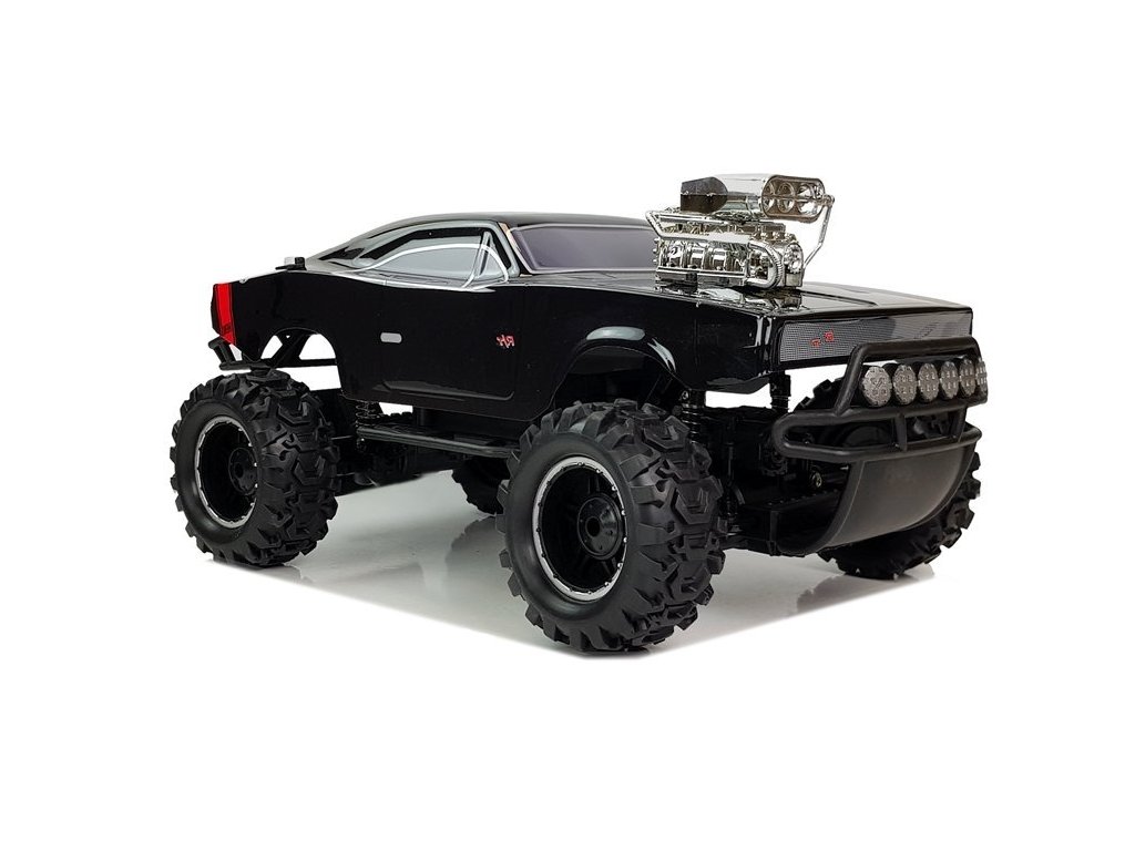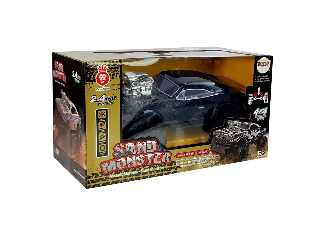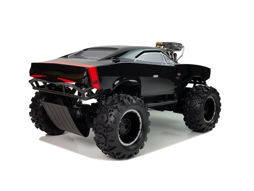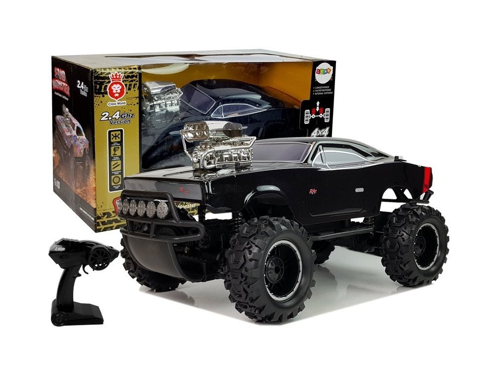 Mașină de jucărie cu telecomandă cu tracțiune integrală . Structura mașinii este rezistentă la impact și cădere, permițând performanțe mai bune la condus. Roțile din cauciuc moale garantează o aderență ridicată a mașinii pe diferite suprafețe.