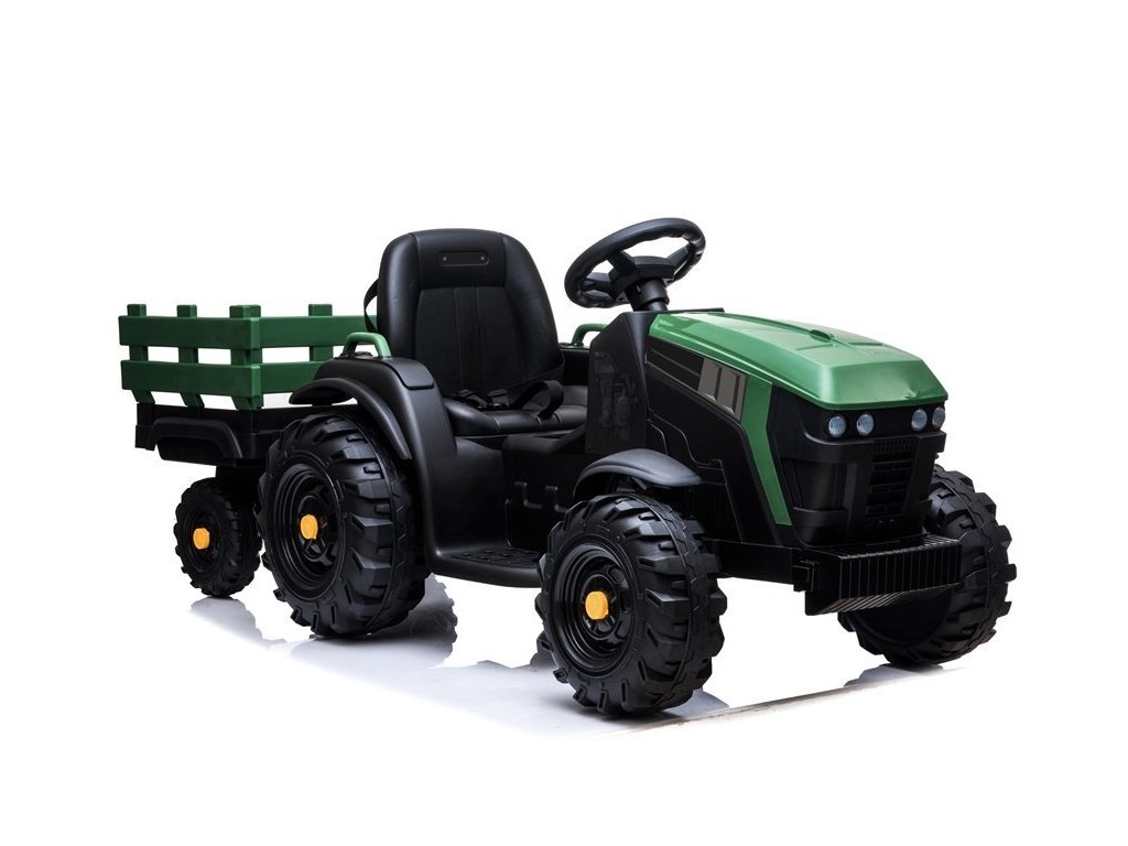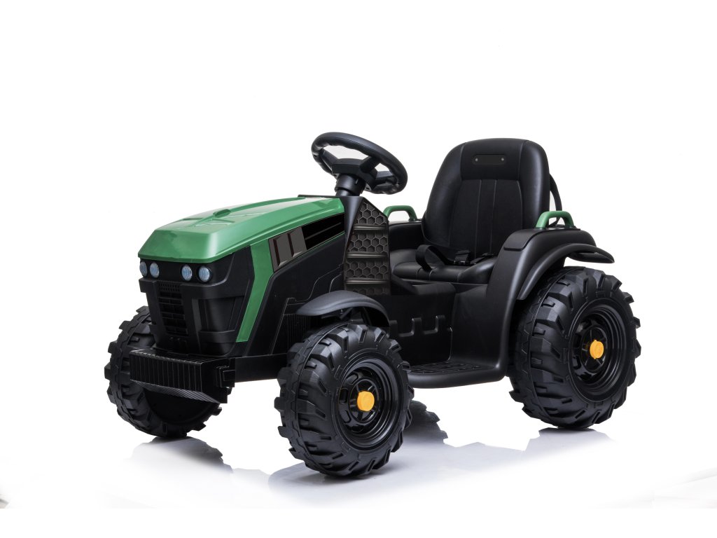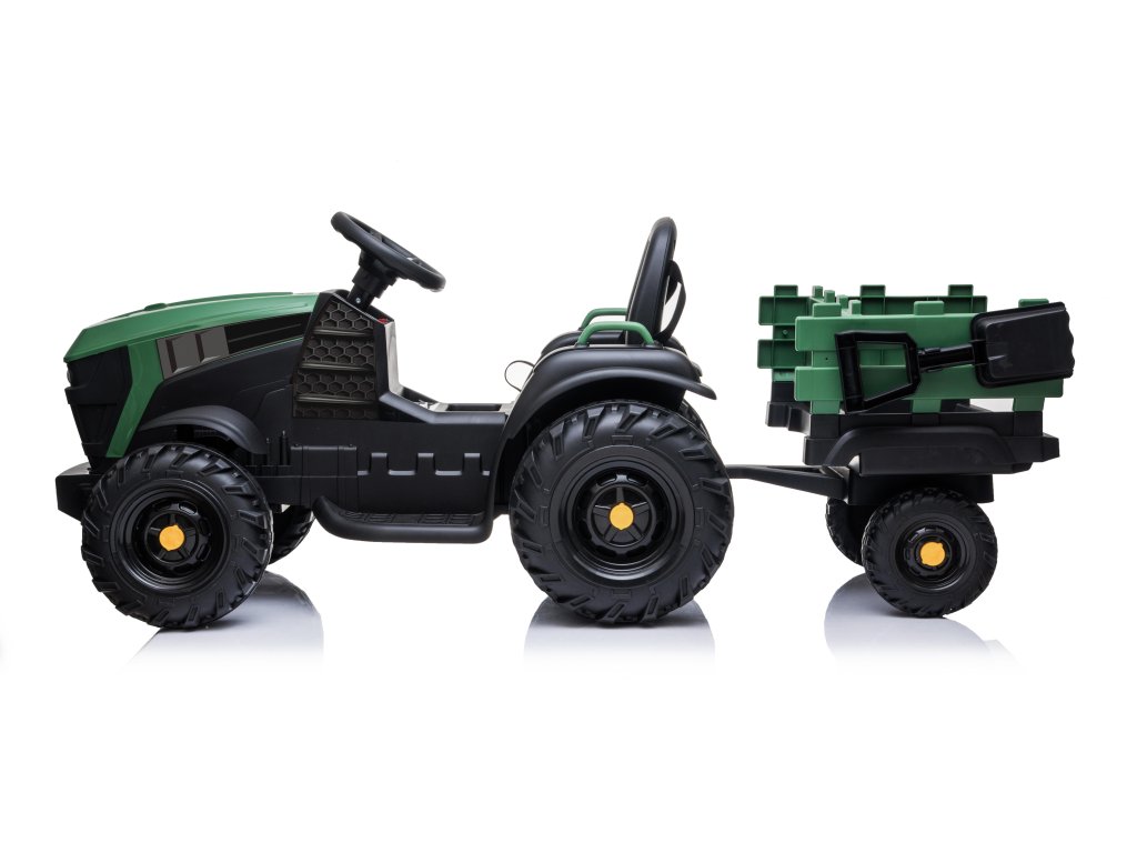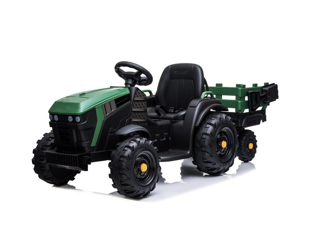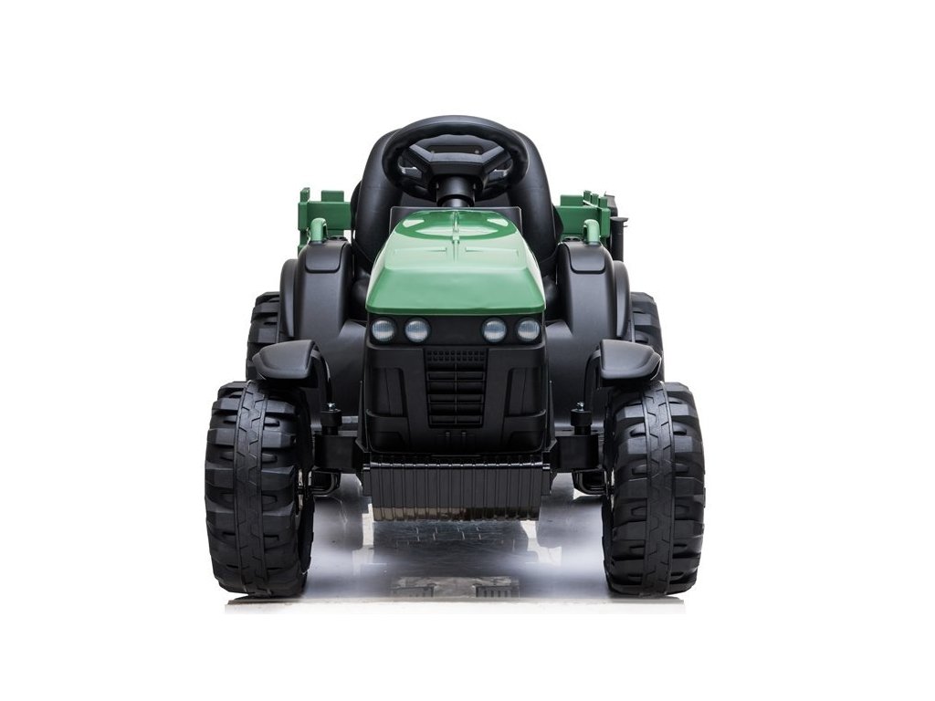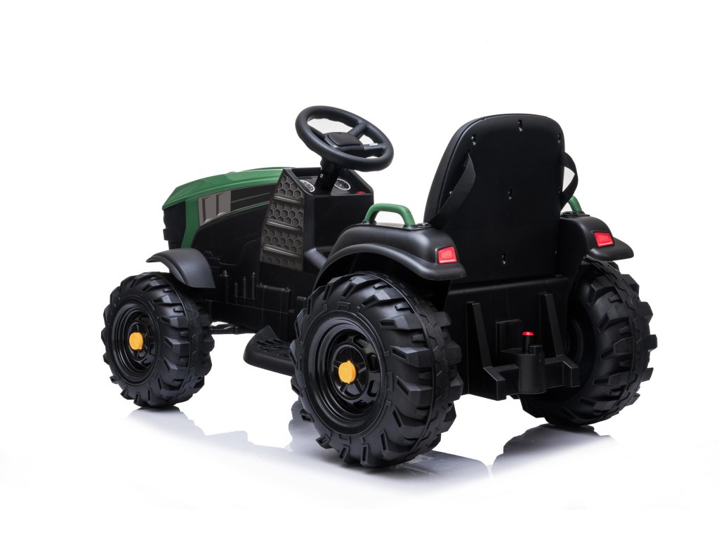 Tractor electric pentru copii vine pe roți moi din spumă Eva, care sunt silențioase și pot face față nu numai suprafețelor pavate. Tractorul este pentru toți copiii cu o capacitate de încărcare de până la 30 kg.