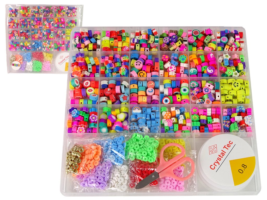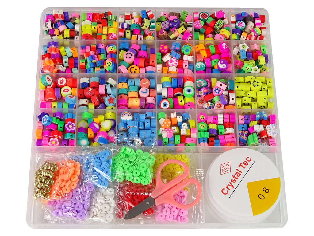 Setul contine tot ce ai nevoie pentru a crea bijuterii. Organizatorul mare oferă până la 24 de modele : fețe, litere, flori, fluturi. Fiecare mărgele este unică și are culori și forme diferite. Fiecare își va găsi preferatul!